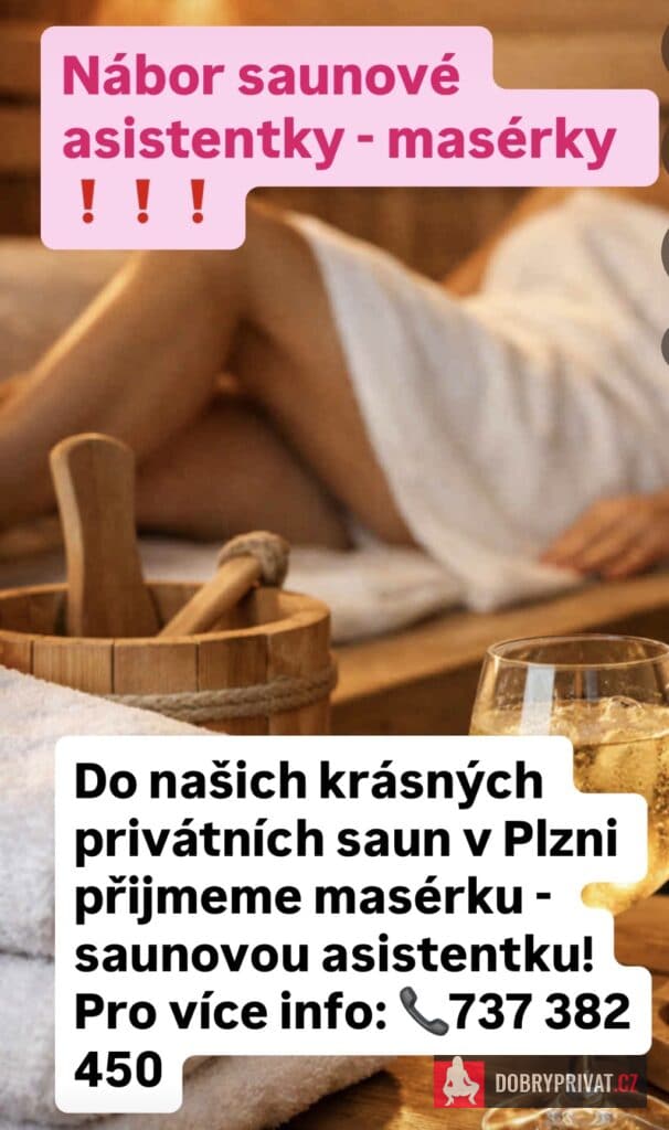 Hledáme dívku, ženu na pozici saunové asistentky, náplň práce saunování s klienty a masáže. V krásném prostředí privátních saun v Plzni. Nabízíme velmi dobré finanční ohodnocení a prověřenou klientelu. Vše domlouvá sauna. Zaučení samozřejmosti. Pracovní doba na domluvě. Pokud chceš pracovat v klidném a milém prostředí kontaktuj Nás na 737 382 450. Těšíme se na spolupráci.