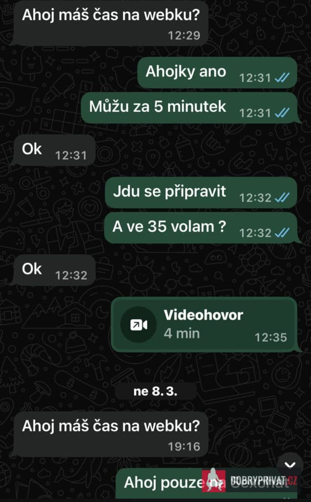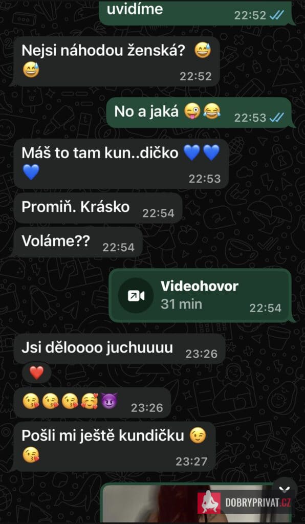 Reál nenabízím 😊Ahojky jsem zrzka-sexy, vysoká a hlavně férová samička co tě dokáže nažhavit.Mrkni na má videa která mluví za vše .Nabízím Ti : 📹Videohovor -koukací, s hračkama nebo v páru, sprostá mluva, oblečky vše s obličejem, školačka ,sestřička, sekretářka, roleplay ✏️Erotické psaní s fotkama/videjkama🎥Videa sólo, velké dildo, LESBI show, sex ve třech, tvrdé šukání, kouření ptáka, anál JOI,Piss nebo video na přání💋Hodnocení tvýho ptáka videjkem 💋Online milenka na den nebo týden👙Tanga od moji voňavé kundičky přes zasilkovnu .😊 Ověření mám ve fotkách a i videích . Pokud nezvedám telefon, piš na whatsapp a já ti co nejdřív odepíšu 😊PS.: Nejvíc dělám Webky ve středu a v neděli, cca od 10:00-18:00